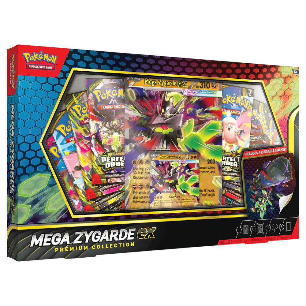 De Pokémon Mega Zygarde Premium ex Box bevat: